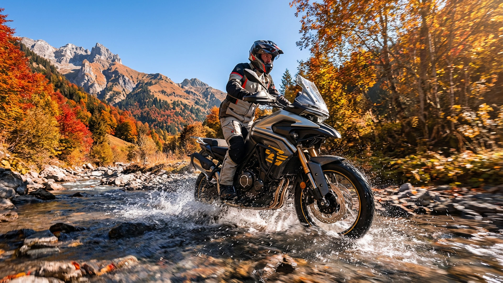 – Justerbar Kayaba-framgaffel och ekerhjul i storlekarna 19” och 17”, utrustade med slanglösa Metzeler-däck.